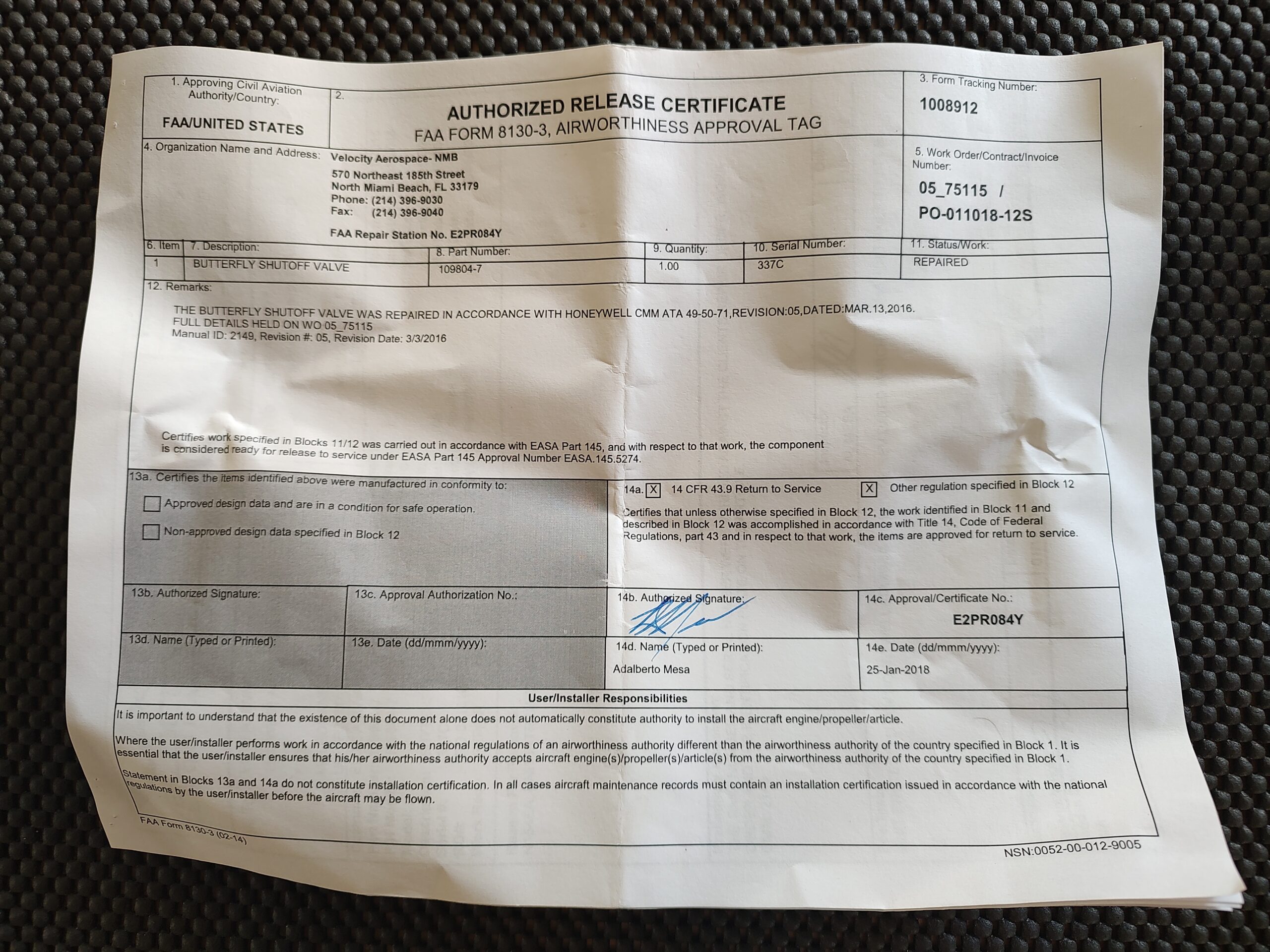 Part Description: BUTTERFLY SHUTOFF VALVE