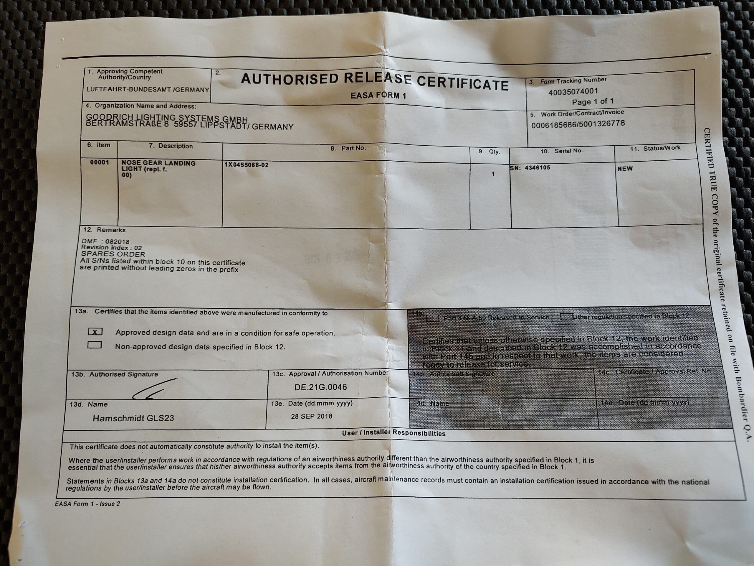 Certification: EASA FORM 1