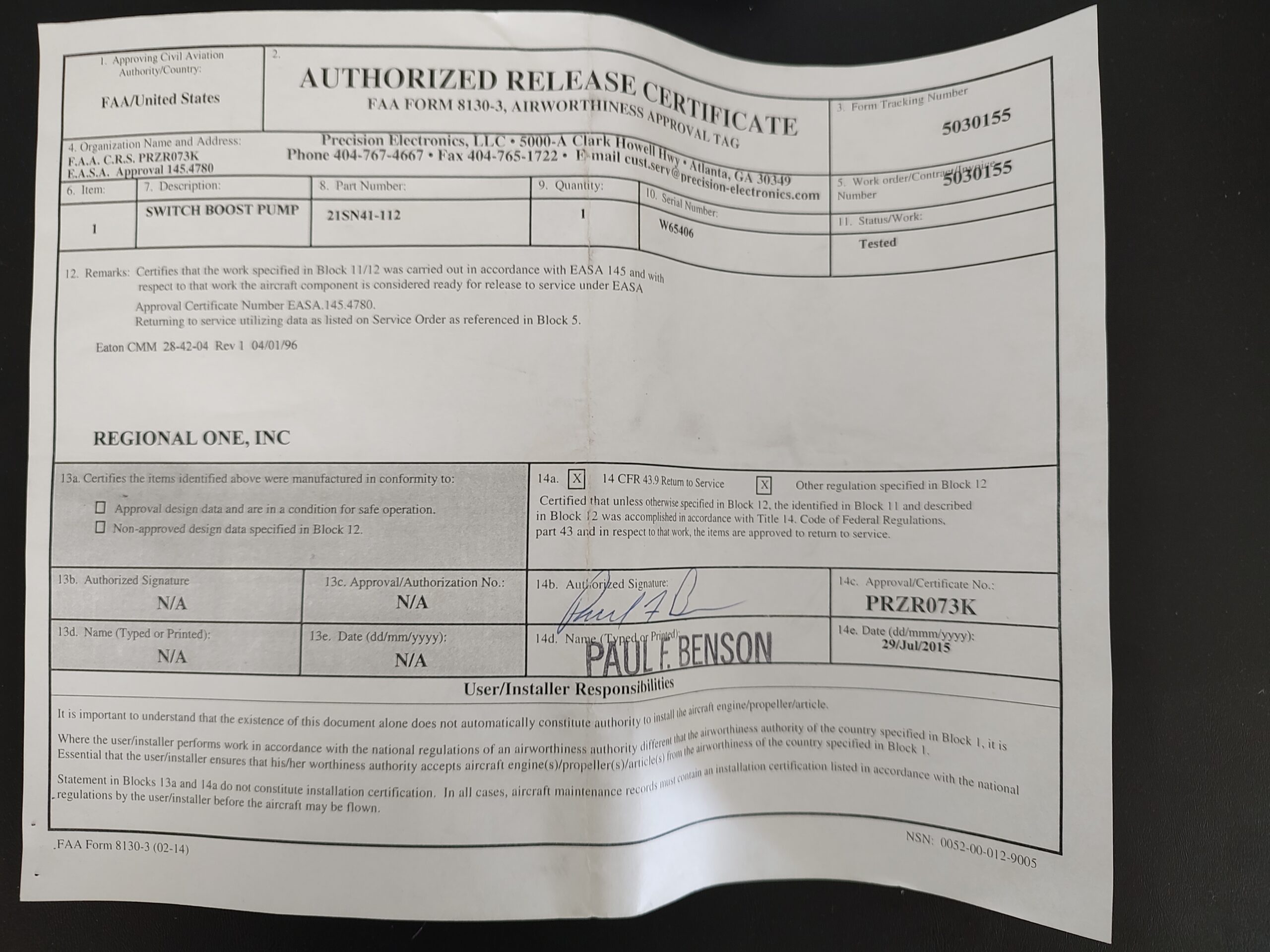 Certification: 8130-3