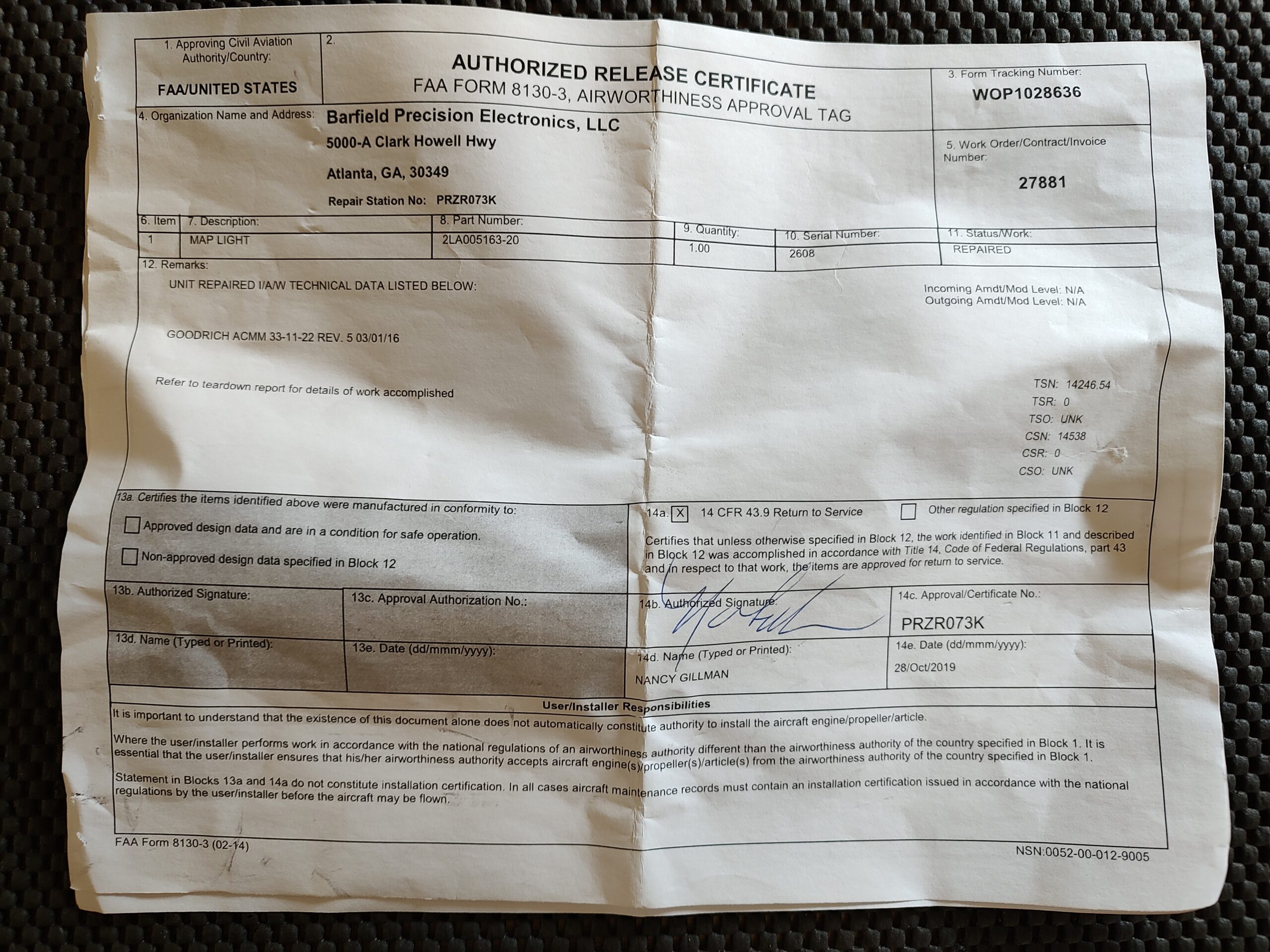 Certification: 8130-3 EASA