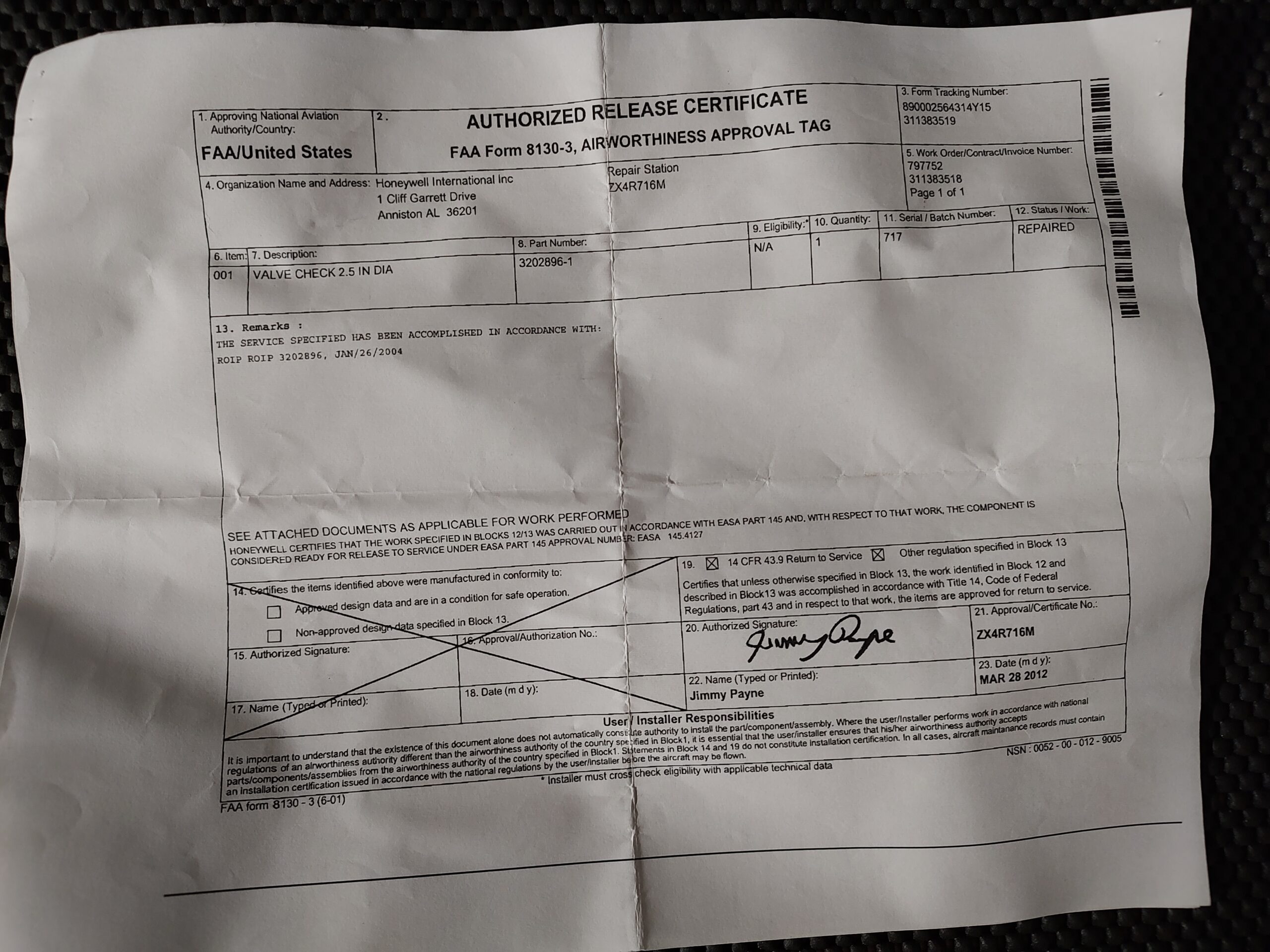 Certification: 8130-3 EASA