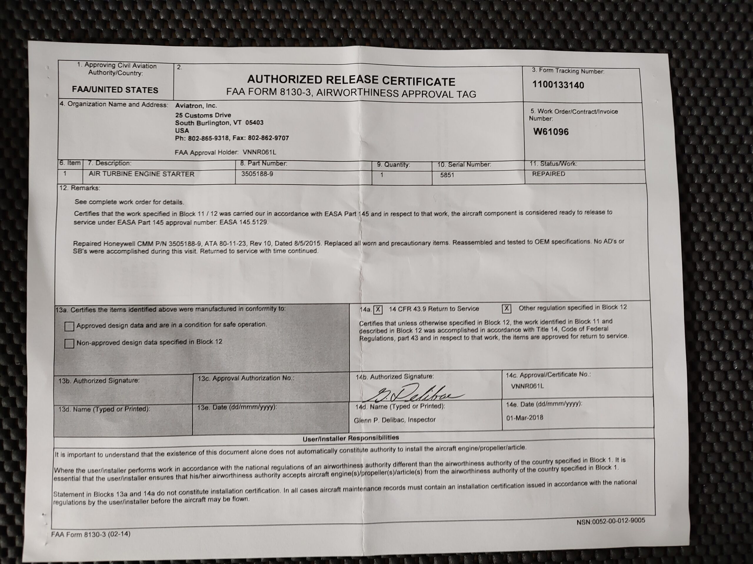 Certification: 8130-3