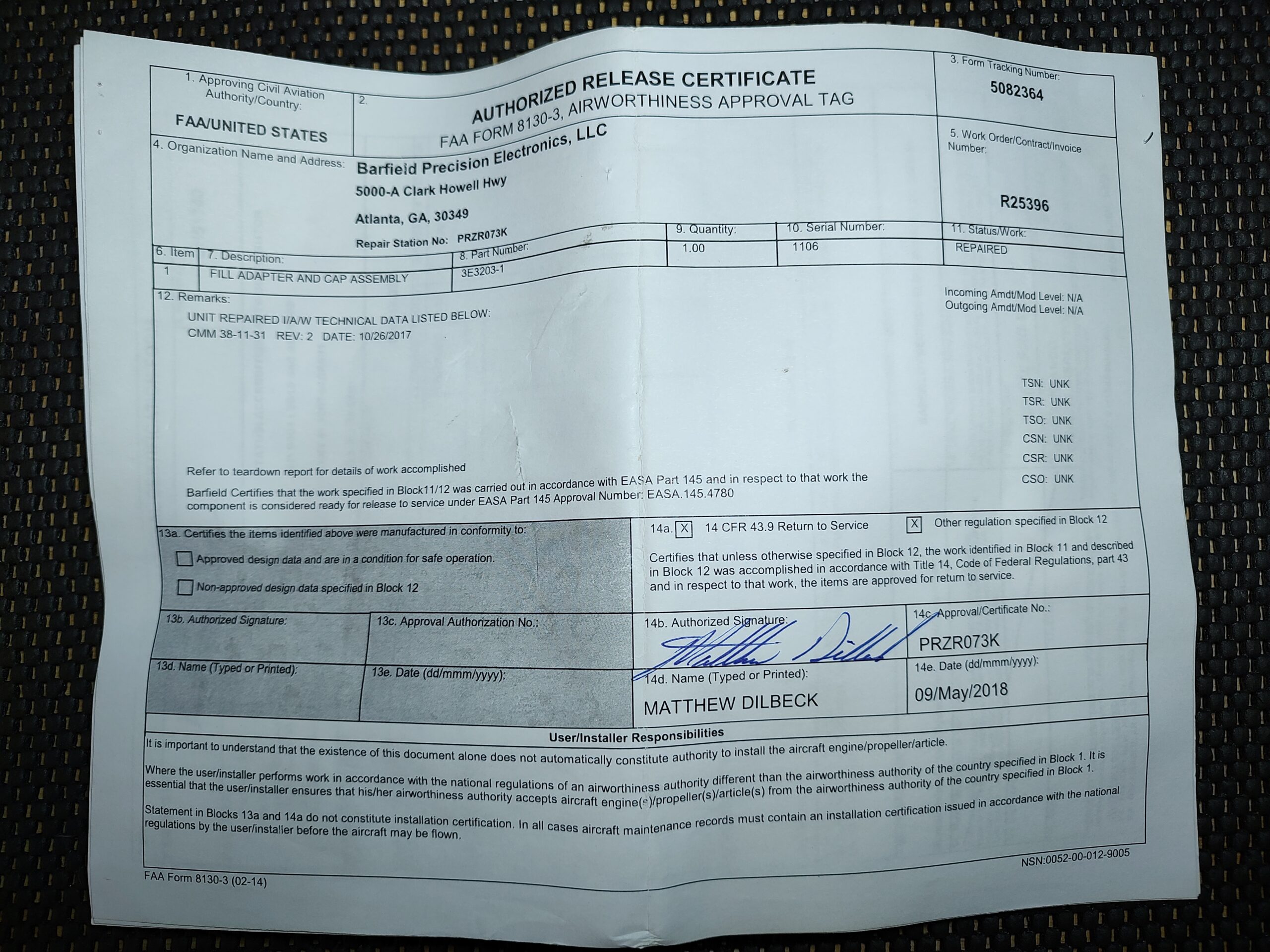 Part Description: FILL ADAPTOR AND CAP ASSY