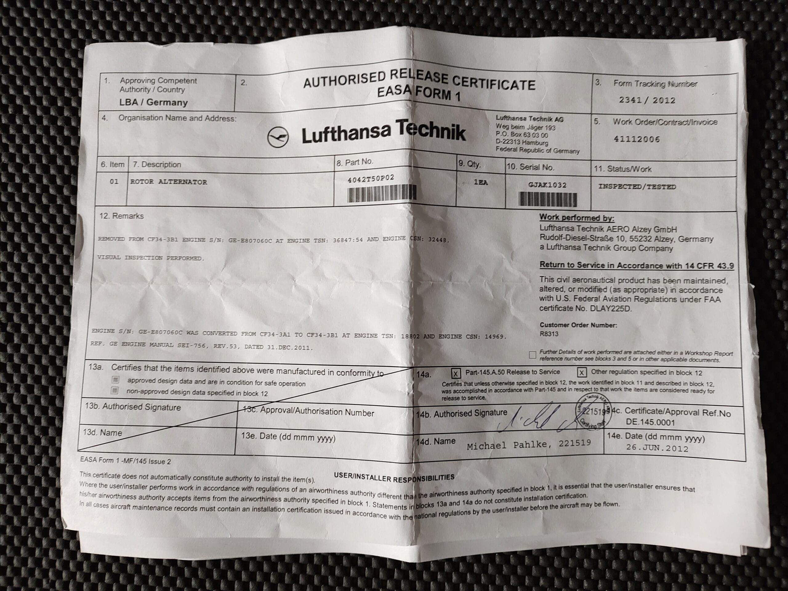 Certification: EASA FORM 1