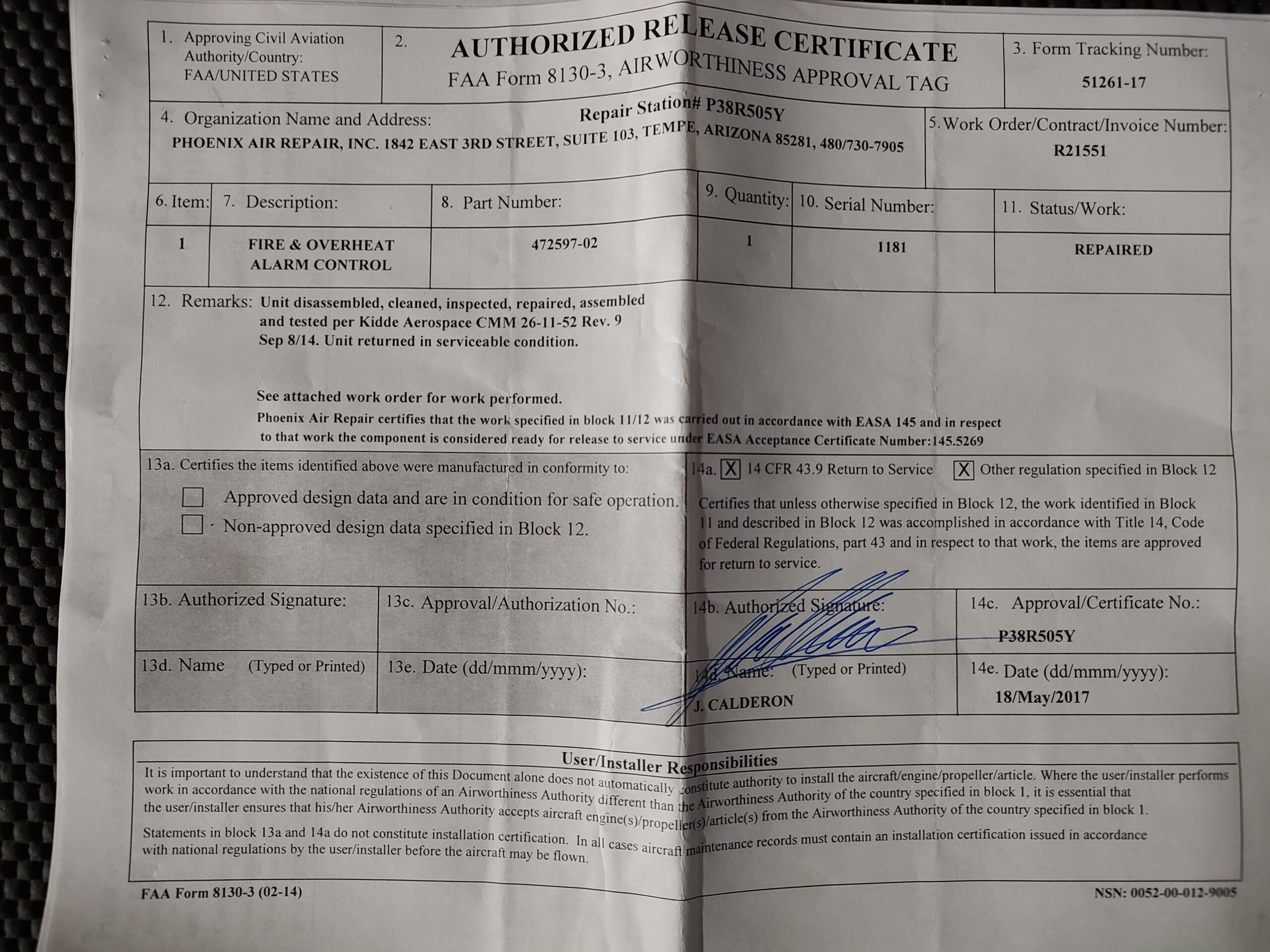 Part Description: FIRE & OVERHEAT ALARM CONT
